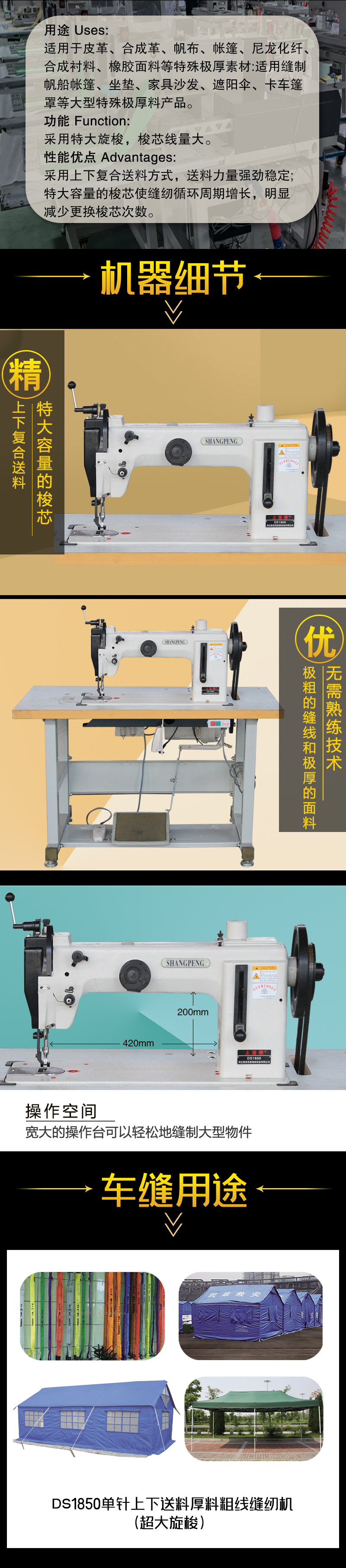 “上篷”牌皮革特厚料缝纫机以其创新设计,深受广大用户的好评。
