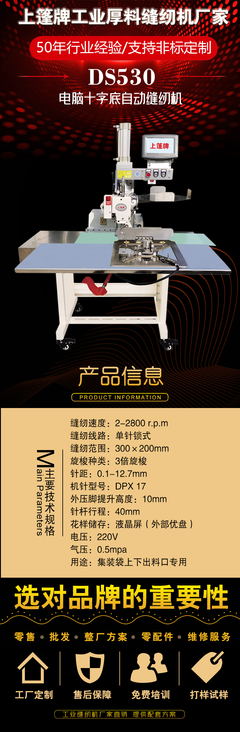 “上篷”牌皮革特厚料缝纫机以其创新设计,深受广大用户的好评。