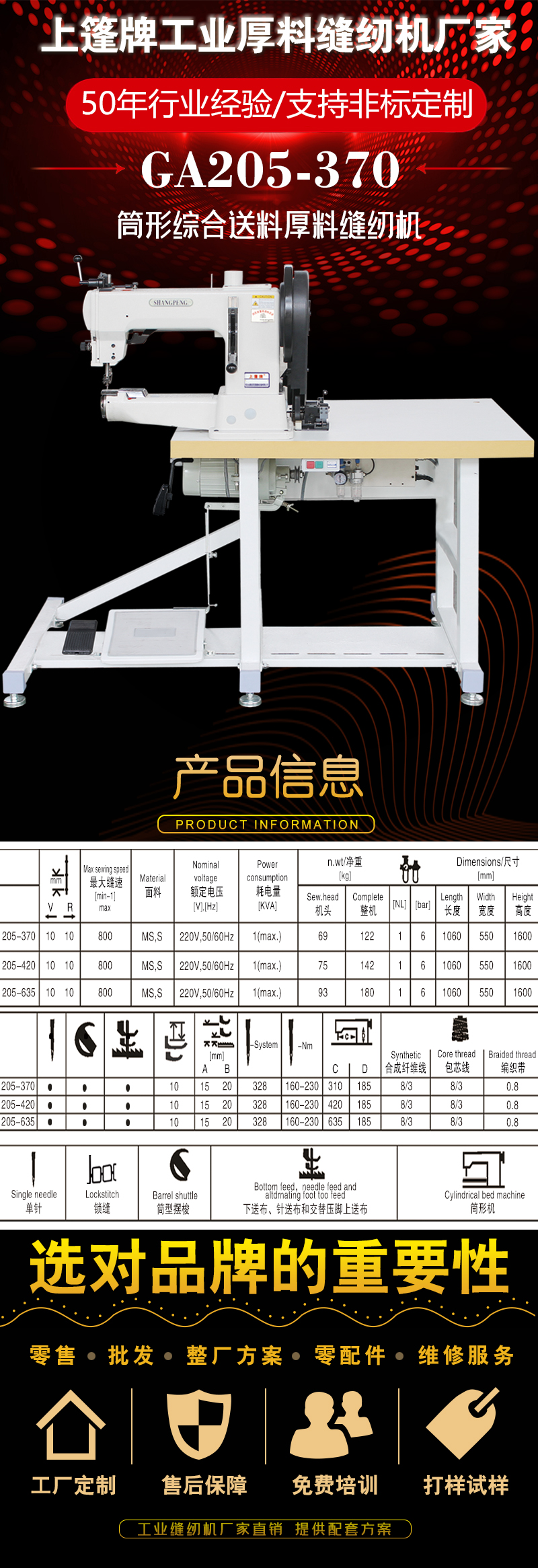 “上篷”牌皮革特厚料缝纫机以其创新设计,深受广大用户的好评。