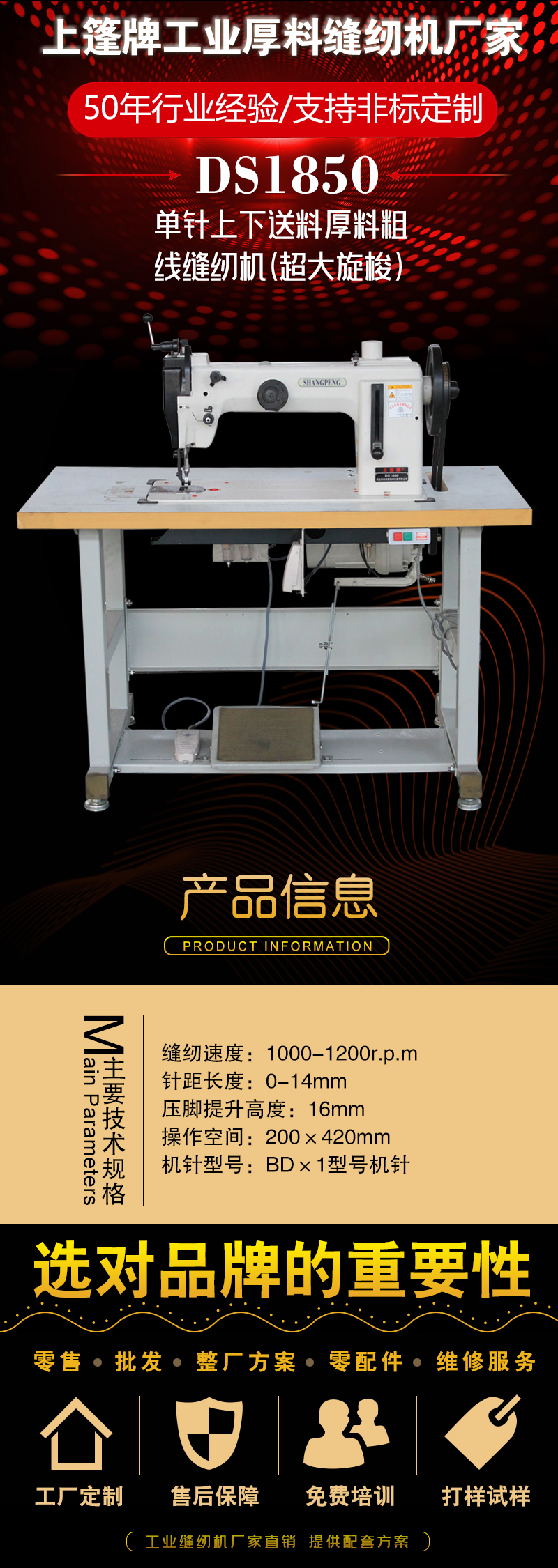 “上篷”牌皮革特厚料缝纫机以其创新设计,深受广大用户的好评。