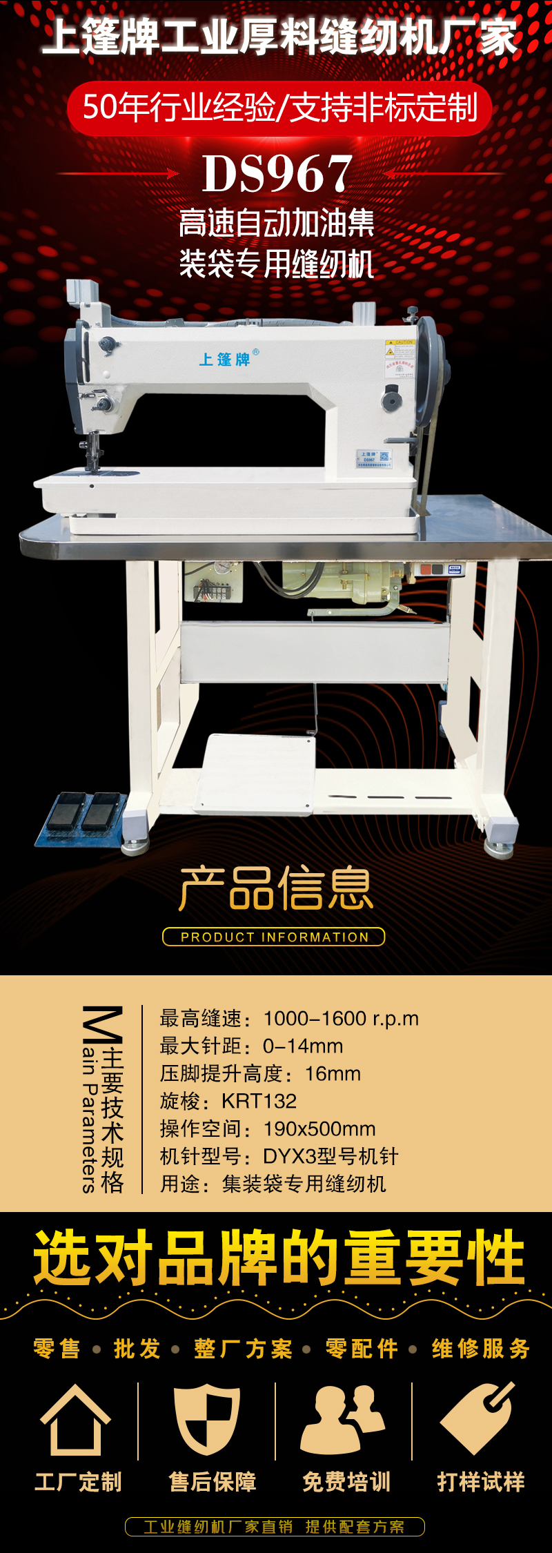 “上篷”牌皮革特厚料缝纫机以其创新设计,深受广大用户的好评。