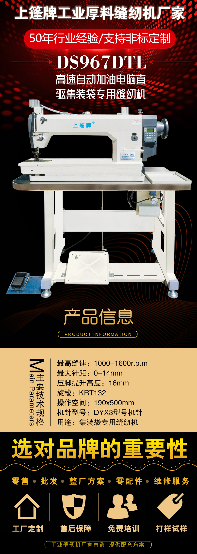“上篷”牌皮革特厚料缝纫机以其创新设计,深受广大用户的好评。