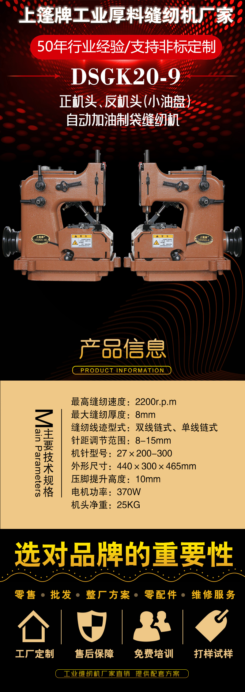 “上篷”牌皮革特厚料缝纫机以其创新设计,深受广大用户的好评。