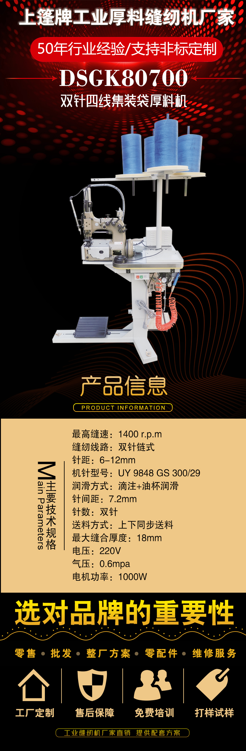 “上篷”牌皮革特厚料缝纫机以其创新设计,深受广大用户的好评。