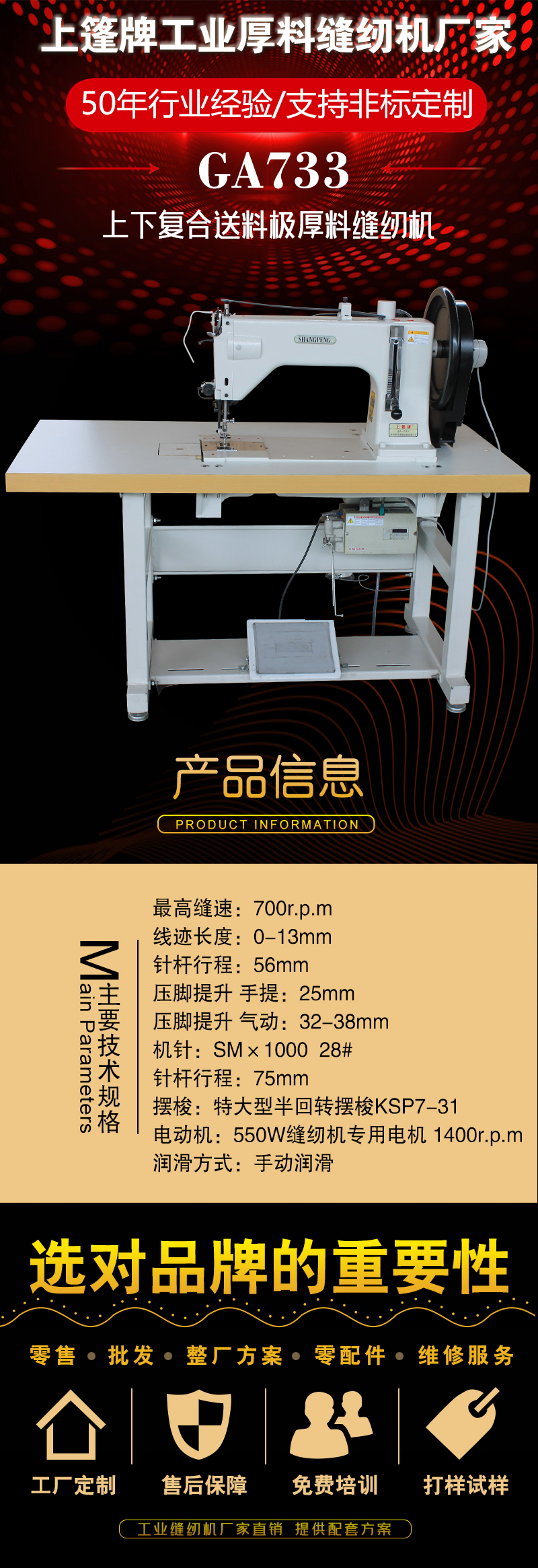 “上篷”牌皮革特厚料缝纫机以其创新设计,深受广大用户的好评。
