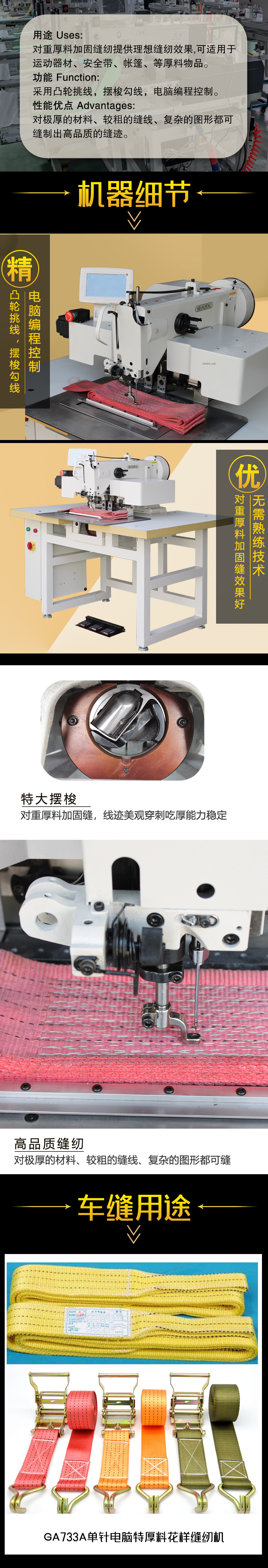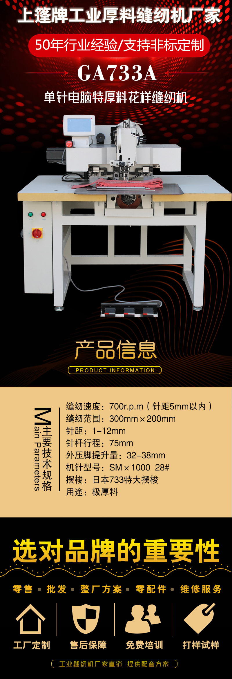 “上篷”牌皮革特厚料缝纫机以其创新设计,深受广大用户的好评。